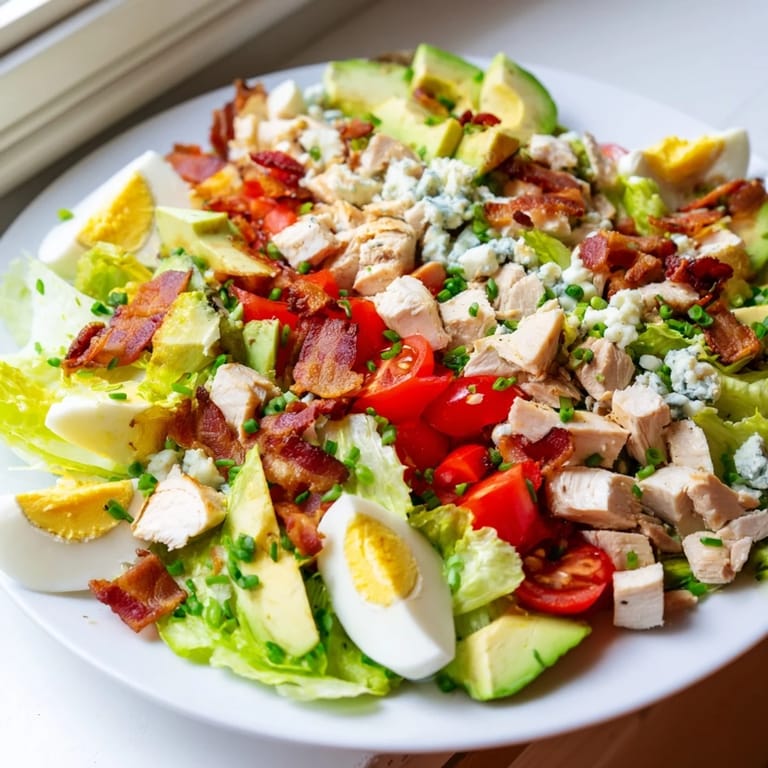 Save I discovered Cobb Salad at a small bistro in Los Angeles on a sweltering afternoon when I couldn't face anything warm. The chef placed this stunning arrangement in front of me—rows of colors so neat it seemed a shame to disturb it, but the first forkful won me over completely. There's something about the way every ingredient works together, never competing, always complementing, that makes you understand why this salad has been a favorite for nearly a century. I went home determined to recreate it, and now it's become my go-to when I want something that feels both indulgent and impossibly simple.