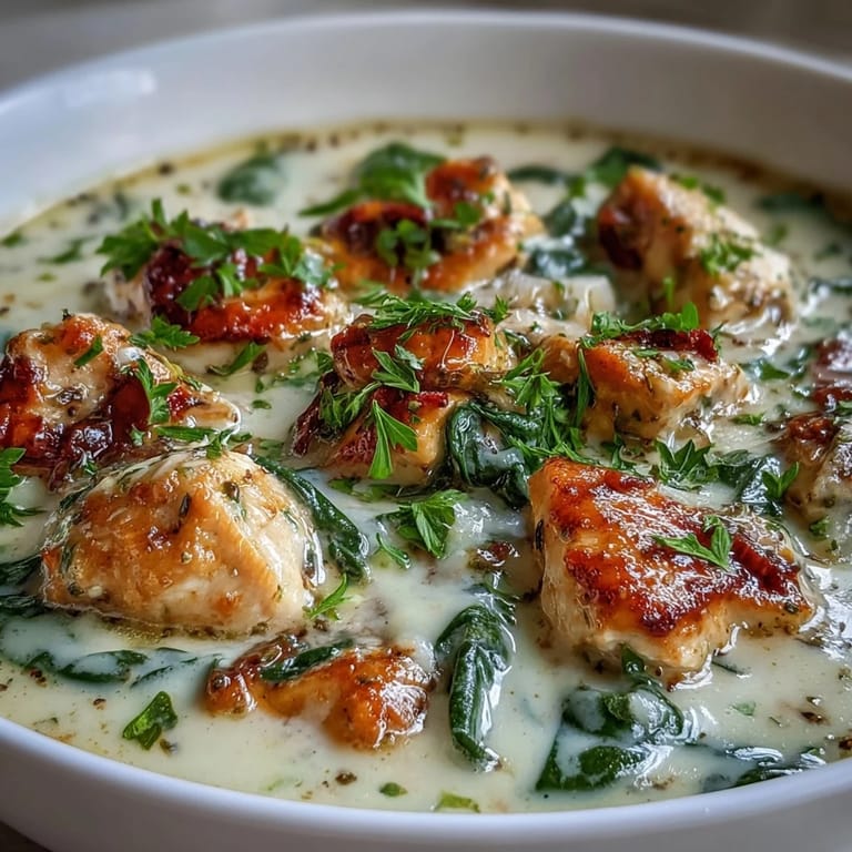 Save My neighbor knocked on the door one rainy Tuesday holding a wedge of Parmesan and a bunch of fresh thyme, asking if I had any chicken. Twenty minutes later, we were standing over a pot of bubbling, garlicky soup that smelled so good we didn't even wait for bowls—we grabbed spoons and tasted it straight from the ladle. That impromptu collaboration taught me that some of the best recipes don't need fancy planning, just good ingredients and a willingness to experiment. This soup has been my go-to ever since, especially when the weather turns gray and I need something that feels like a warm hug. It's creamy, satisfying, and comes together faster than most people think.