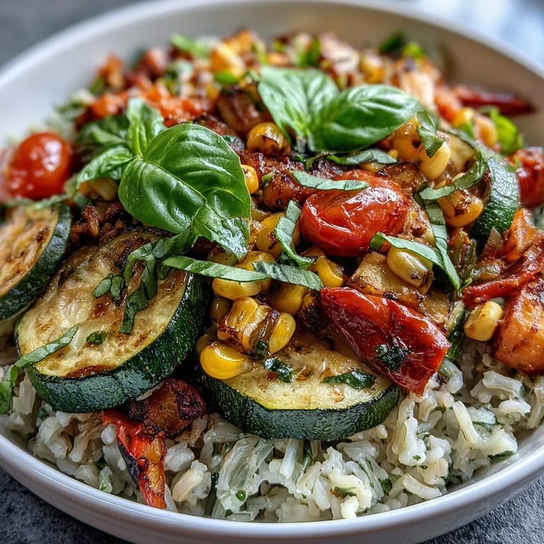 Save When the sun is high and gardens are bursting with produce, there is nothing quite as satisfying as a meal that celebrates the season's bounty. This Summer Vegetable Bowl is a vibrant celebration of color and freshness, bringing together the crunch of zucchini, the sweetness of corn, and the juiciness of sun-ripened tomatoes. Served over a bed of fluffy rice, it is a light yet fulfilling dish that captures the essence of a warm summer evening in every bite.