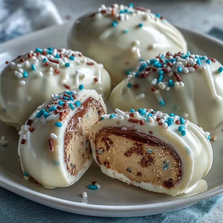 Save The sound of the mixer whirring and the sweet scent of white chocolate always takes me back to a spring afternoon when I first whipped up these White Chocolate Peanut Butter Easter Eggs. I was in a rush to create something festive and stumbled upon this combo—but nothing prepared me for the way the smooth peanut butter filling melded with the creamy white chocolate. The sprinkles scattered everywhere made for a playful clean-up and a kitchen that looked ready for celebration. These eggs quickly became my go-to surprise for friends who needed a little extra brightness in their day. Sometimes, the best treats are discovered by accident when you're feeling creative and a little messy.